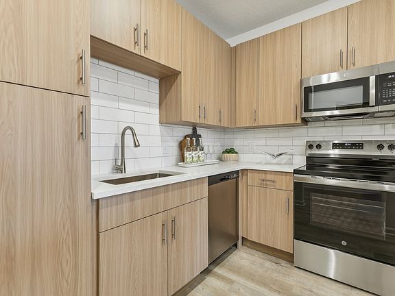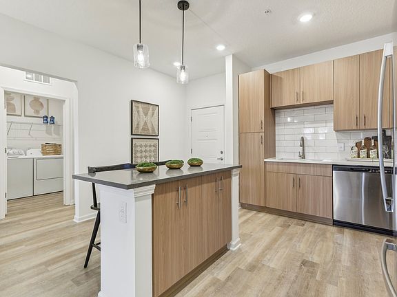 Two-Bedroom Apartment Home with Energy-Efficient Stainless-Steel Appliance Package, Goose Neck Kitchen Faucet with Pull Down Sprayer, Undermount Kitchen Sinks, Subway Tiled Kitchen Backsplashes, Built-In Microwaves, Kitchen Island with Pendant Lighting*, Quartz Countertops, Kitchen Pantry*, Kitchen Window*, Wood-designed Plank Flooring, Custom 42-Inch Cabinets, Soaker Garden-Style Bathtubs*, Stand Alone Showers with Glass Doors, Ceramic Tile Shower Surround, Vanities with Undermount Double Sinks, Curved Shower Rods, Oversized Linen Cabinet, Washer & Dryer Included, Semi-recessed Lighting, Built-in USB Ports, 2-inch Blinds, Brushed Nickel Hardware & Lighting, Ceiling Fans in Living Room, Oversized Closets, Private Patios & Balconies*, Pool Views* *Available in Select Apartment Homes