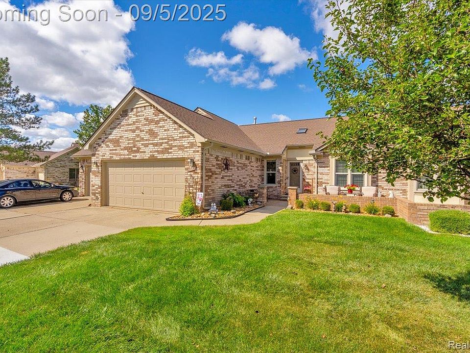 Welcome to this beautifully maintained ranch, perfect for downsizers or anyone seeking single-level living. This home offers two spacious bedrooms and two full bathrooms, thoughtfully positioned for convenience. The kitchen and half bath feature elegant granite counters, while the furnace, AC, and hot water heater were all replaced in 2018, giving peace of mind for years to come. Step outside to the large deck overlooking the pond and fountain, complete with a powered retractable awning—perfect for enjoying the view in comfort, rain or shine. The property also includes a two-car attached garage and a full basement with a backup sump pump for added security. Located just south of the Nicholson Nature Center, you’ll appreciate the easy access to I-94, Hall Road, Partridge Creek Mall, and Selfridge Air Force Base. The current owners have taken great care of this home, making it truly move-in ready.