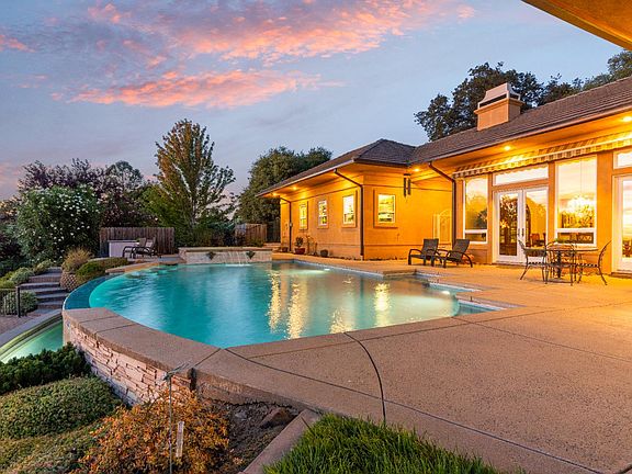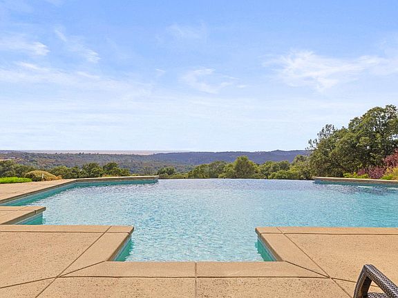 Perched atop Shingle Springs, this spectacular estate offers jaw-dropping, uninterrupted 120 degree panoramic views spanning 75+ miles, including Downtown Sacramento, Mt. Diablo, California Coastal Range & beyond. The show stopping infinity-edge pool w/ a swim up bar, 8-person spa, outdoor kitchen, and multiple entertaining areas are all perfectly positioned to capture glorious sunsets! Set on 5+ usable acres, ideal for vineyards, animals, or a shop, this custom single-story 3,650 sqft home was designed to frame the views from every angle. Inside, enjoy 3-4 spacious bedrooms including a luxurious spa-like primary suite, a home gym (or optional 4th bedroom), office, dining room, breakfast area, and an open-concept kitchen that flows into a family room with a full bar, backdropped by those forever views. Additional highlights include a 33x22 deep garage, a koi pond, dry sauna with sound system, 39-panel owned solar, two dual-fuel generators, Boston Acoustic whole house sound, tankless hot water heater, remote-controlled awnings, water leak detector, newer appliances, raised garden beds, fenced orchard, water-efficient drip irrigation systems and more. This is a true entertainer's dream above the horizon. Once you see it, nothing else will compare!