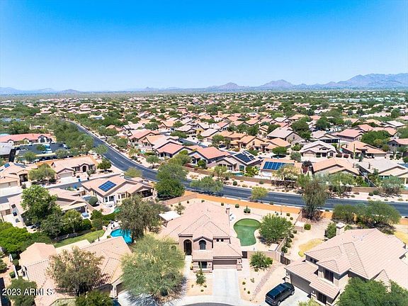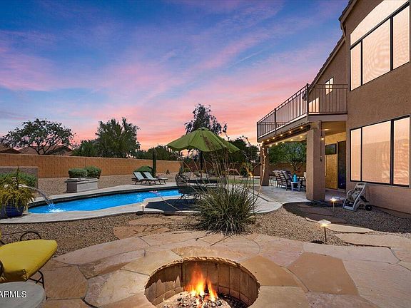 Perfectly situated on a premium corner lot in the highly sought after North Phoenix community of Desert Ridge, this sophisticated home is an entertainer's retreat! Offering 5-bedrooms, a private office with custom built-ins, and ample living spaces for guests and entertainment! The sleek kitchen design boasts custom cabinetry with professional stainless steel appliance package, designer backsplash, and large island overlooking the inviting family room with custom floor-to-ceiling fireplace. Spacious primary suite features soaring ceilings and private exit to the large balcony - ideal for enjoying your morning coffee! Spa-like en-suite primary bath is completely remodeled with a large walk-in shower, dual vanities, and two closets! The expansive backyard oasis is a tranquil... see more retreat with a sparkling pebble-tec pool, custom putting green, outdoor built-in BBQ, firepit, and large covered patio with built-in speakers and sunshade! Your new home is only moments from Desert Ridge's acclaimed JW Marriott Resort & Spa, golfing, dining, shopping & entertainment district. This property is truly one you do not want to miss! *Upgrades and updates provided in the docs tab!