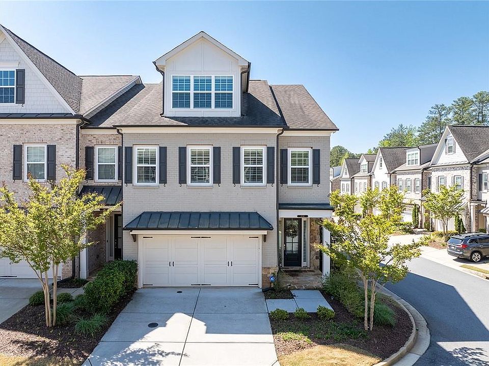 Luxury East Cobb end unit townhome with a coveted Roswell address. Custom made cabinets/shelves in the family room with fireplace. Spacious kitchen with Thermador Appliances. Large 10' island with quartz countertop with farm sink. Walk-in pantry with option for a second or large storage closet. Primary suite with sitting area that is separated by barn doors. 4" plantation shutters throughout the home. Upgraded hardwood floors throughout the home. 3rd floor flex space has a wet bar. Pre Wired security system, intercom, and sound system. The gated community provides exceptional amenities, including a pool, clubhouse and outdoor fireplace gathering area. Located just minutes from Historic Roswell and East Cobb's Merchants Walk Shopping Area. Major grocery stores, restaurants, and shopping are conveniently situated right across from the gated entrance. The HOA covers exterior landscaping and maintenance, ensuring a low-maintenance lifestyle. *Roswell address with top ranking Cobb County Schools.