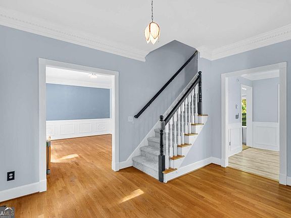 This charming traditional two-story home with a finished basement and three-car parking (including a rare tandem garage) is tucked away on a beautifully landscaped lot, offering a perfect blend of space, privacy, and convenience. The fenced front yard and wooded backyard views provide a peaceful, private setting that's hard to find. Step inside to a freshly painted interior showcasing crown molding, wainscoting, gleaming hardwood floors, and new light fixtures throughout. The formal living room and formal dining room set an elegant tone, while the inviting family room features a tray ceiling, beautifully stained built-ins flanking a classic fireplace, ad great natural light creating the perfect gathering space. The eat-in kitchen offers granite countertops, travertine backsplash, breakfast bar, along with access to the back deck for easy outdoor dining. Upstairs, the vaulted primary suite is a spacious retreat with tray ceilings, a soaking tub, walk-in shower, double vanity, and a generous walk-in closet. Three spacious secondary bedrooms, and an additional full bath accommodates guests or family with ease. The finished basement provides incredible flexibility with a media room, or potential home gym, office, or playroom-ready to suit your needs. Outside, enjoy a backyard filled with apple, pear, fig, nectarine, peach, mulberry, apricot trees, and grapes, offering a mini orchard right at home. With leaf guard gutters, a new hot water heater, and thoughtful upgrades throughout, this home is move-in ready. NO HOA allows you to design and customize you outdoor living based on your lifestyle. Located just minutes from Kennesaw State University, top-rated schools, healthcare, shopping, dining, and major highways, this home combines classic charm with modern convenience in one of the area's most desirable locations. Don't miss this one-of-a-kind opportunity!