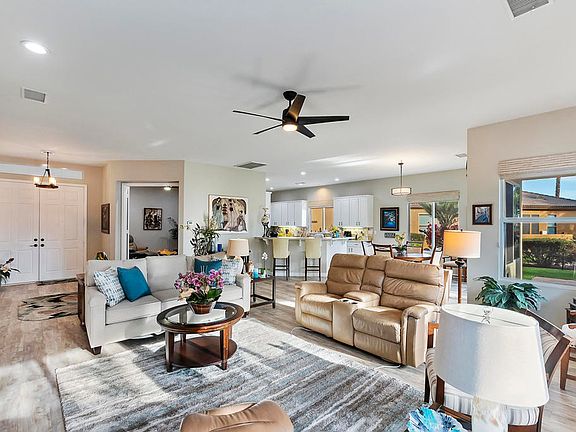 You are going to love the incredible views of the golf course, lake and mountain views without the problem of golf balls flying overhead. Over the past year we have given the house a makeover that exceeded $90,000... It looks great. When you visit the house, we will be happy to share all of those details. Of course, you will want to know that there are 2 bedrooms, two bathrooms, a pretty good-sized den, a very nice kitchen, and a large family room. With a golf course in the 55 plus Heritage Palms Development the 3rd garage will be a great place for your golf cart. There are a large number of activities, great parties at the club house as well as friendly neighbors.
