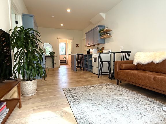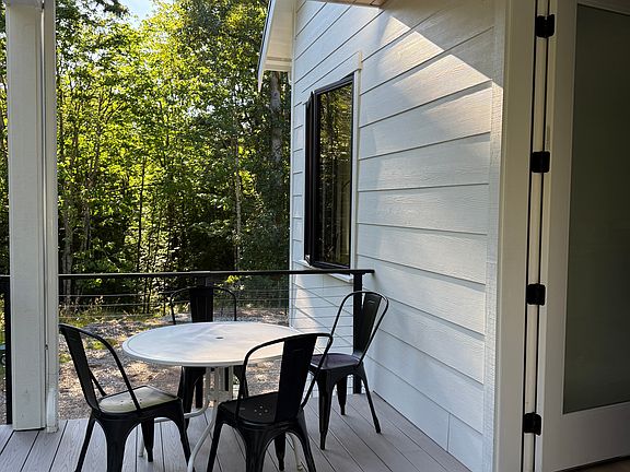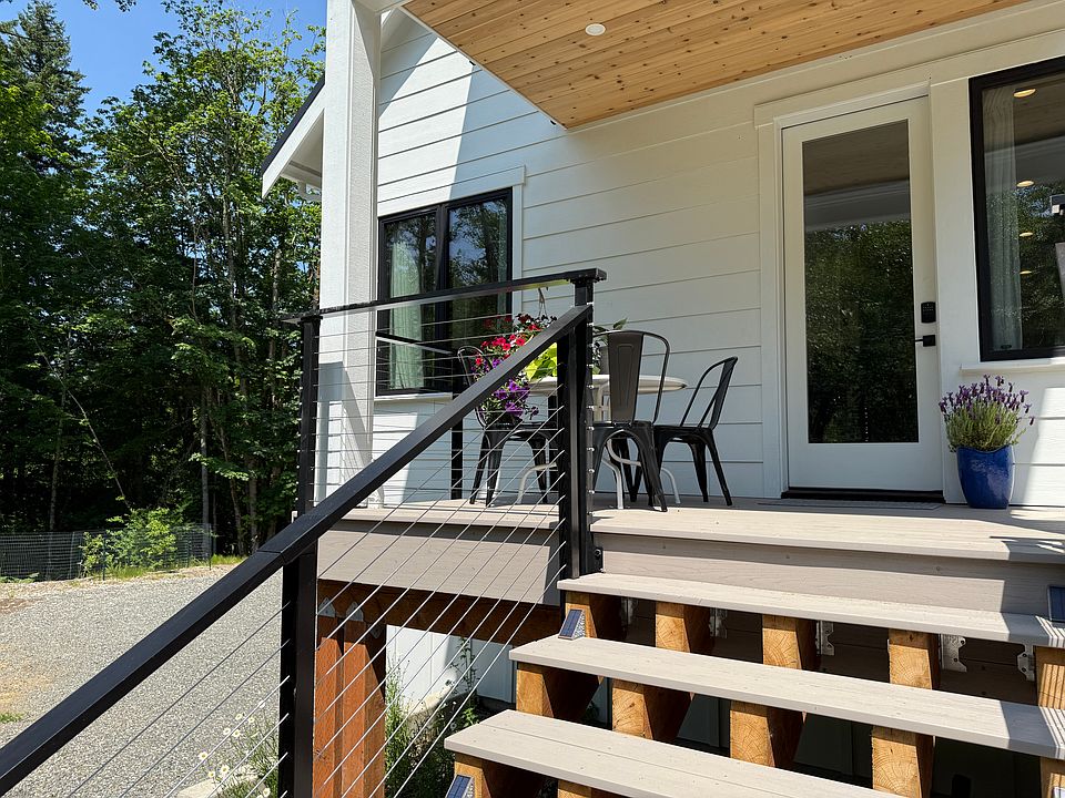 Fully furnished monthly rental starting January 1 2026. This brand-new (two-year-new) modern farmhouse apartment is light-filled with an open-concept living/dining area and a fully equipped kitchen. The bathroom features a freestanding soaking tub with a handheld shower wand for spa-like relaxation. Thoughtful touches include secure keyless entry, dedicated workspace with high-speed Wi-Fi, and curated furnishings with 100% cotton linens. Both bedrooms have large closets for extended stays and winter gear. Tucked at the end of a quiet lane and surrounded by forest, it feels private and peaceful, yet you're minutes to Galbraith Mountain trails, Lake Whatcom, and downtown Bellingham. Dedicated driveway parking for up to two cars.