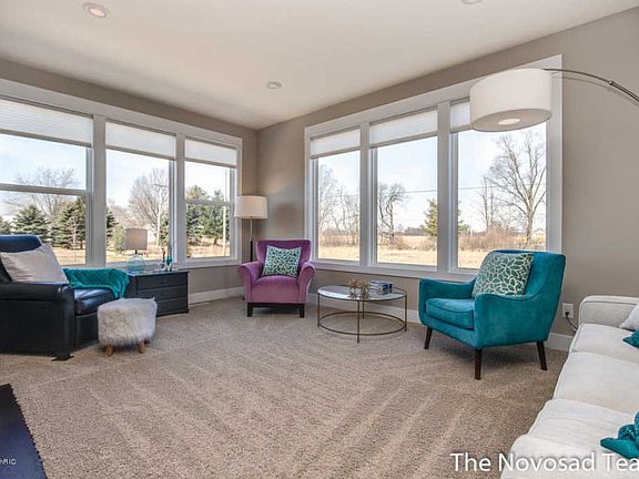 Truly a gorgeous home and one of the best values in Rockford Schools. Owners put careful thought into the many upgrades when building (must see feature sheet) including craftsmen trim, upgraded lighting/fixtures, wide-plank flooring, etc. Beautiful chef's kitchen flows between the generous prep space and large dining area. Enjoy a two-way gas fireplace between family and hearth room, while still having a formal sitting or study/music room. Or relax in the sunroom for stunning evening views. Upstairs features 3 bedrooms, full bath and convenient laundry plus a luxurious master suite with more expansive views. Another bedroom and full bath in the lower level plus space for a future rec room. Private lot with peaceful pastoral views in a readily accessible suburban-country setting.