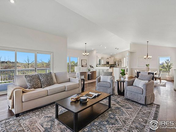 Enjoy sweeping mountain and lake views from this 4-bedroom, 3-bath ranch-style retreat. With designer touches throughout and set on a rare, private small acreage just minutes from downtown Fort Collins Inside, an open floor plan creates a warm, inviting flow ideal for everyday living and entertaining. The kitchen features freshly painted cabinetry, a newer butcher block island, a newer water heater, and a newer roof Step outside to a fully fenced yard, ideal for kids and pets, complete with RV and boat parking for your Colorado adventures. The oversized garage provides abundant storage, while a cozy fire pit area invites evenings spent under the stars. Perhaps best of all, the property includes HOA lake access, offering the rare opportunity to enjoy fishing, kayaking, or paddle boarding on calm, wakeless waters-all framed by breathtaking mountain views. This home embodies the essence of Fort Collins living: scenic, serene, and beautifully appointed. With thoughtful updates, a prime location, and endless outdoor enjoyment, it's a place where comfort meets Colorado lifestyle.