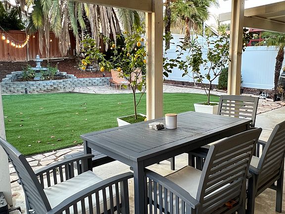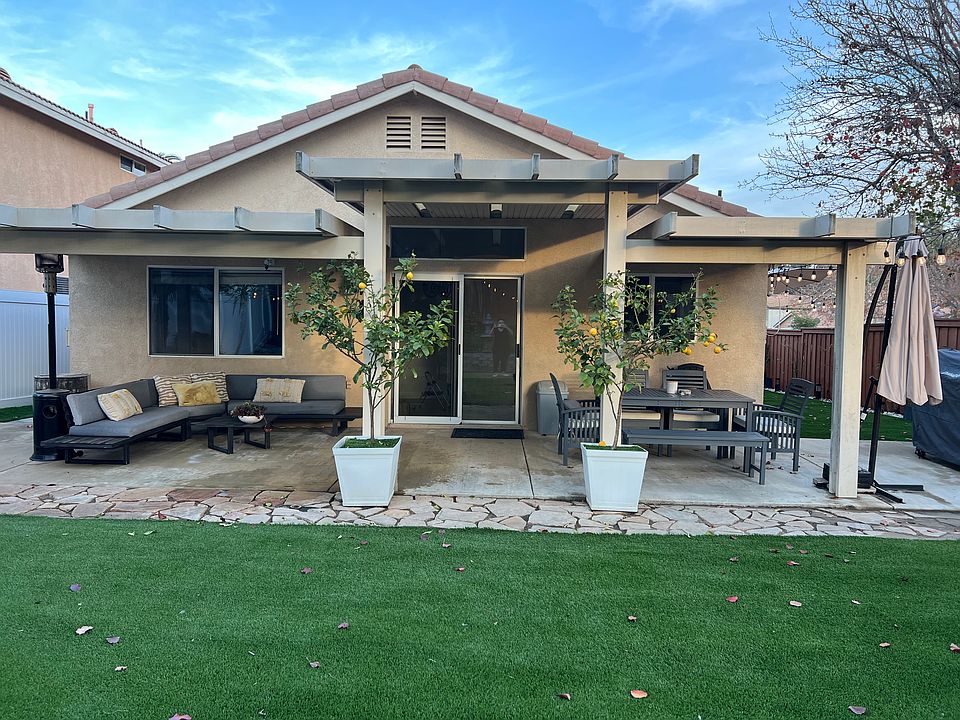 Welcome to this charming 3-bedroom, 2-bath single-story home located in the highly sought-after Paloma Del Sol community in South Temecula, CA. Situated on a desirable corner lot, this home boasts an open, light, and bright floor plan with tile flooring throughout. The family room features vaulted ceilings, creating a spacious and inviting atmosphere. The U-shaped kitchen is conveniently adjacent to the dining area, making it perfect for family meals or entertaining. The large master bedroom includes a walk-in closet, and two additional generously sized bedrooms complete the interior of the home. Additional features include: A two-car garage with storage A large backyard with a covered patio, ideal for entertaining or relaxing Outdoor furniture included (as-is, ) A Samsung washer and dryer set A refrigerator (can be placed in the kitchen or used as a secondary fridge) Almost new range/oven and microwave A dishwasher for added convenience This home is located in the Paloma Del Sol HOA community, offering fantastic amenities such as pools, tennis courts, walking trails, parks, and more. Close to excellent schools, shopping, and dining. Whether you're entertaining guests or enjoying peaceful evenings in the backyard, this home has everything you need. Schedule a viewing today! Renter responsible for water, gas, electricity, and internet. The outdoor furniture is included as-is and will not be replaced or repaired by the owner if damaged or broken. Tenants have the option to keep and use the furniture as it is, or dispose of it at their own discretion. No replacements or maintenance of the outdoor furniture will be provided.