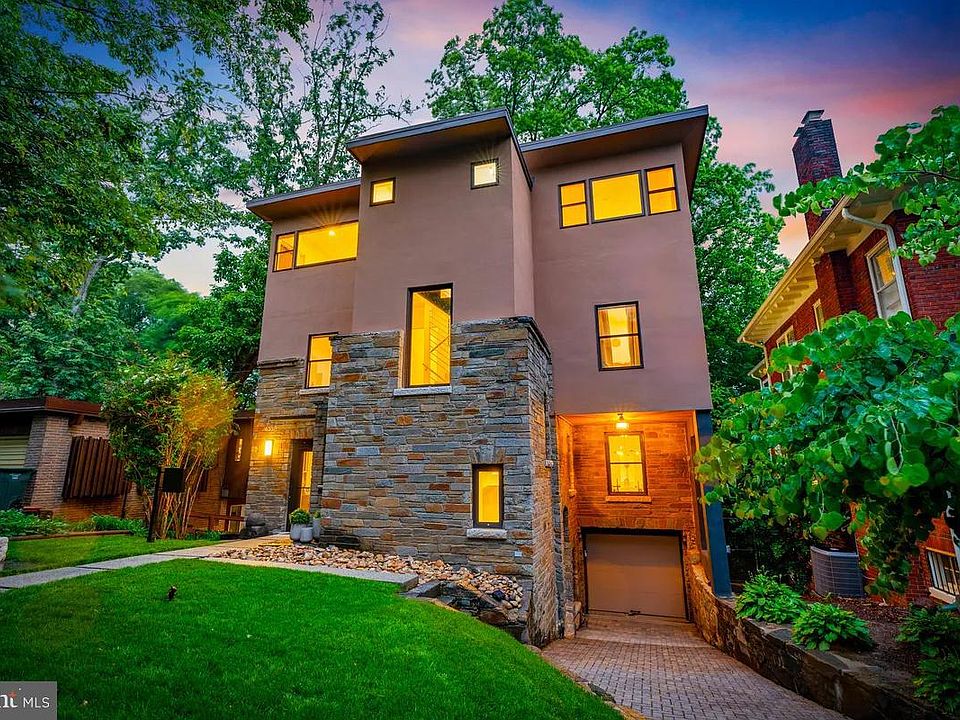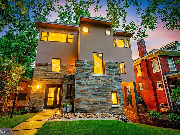 Luxurious Contemporary Living in Crestwood Perfectly sited on one of Crestwood’s most picturesque streets, this extraordinary 7-bedroom, 5.5-bathroom residence offers over 4,500 square feet of sophisticated living space on a lush, terraced 9,000+ square foot lot. Custom designed by a noted architect, the home’s striking modern interiors seamlessly blend elegance, functionality, and natural light. The main level showcases a dramatic open flow with expansive living and dining areas, complemented by a chef’s kitchen with professional-grade appliances and custom cabinetry. Just beyond, a show-stopping entertainment room with soaring ceilings and walls of glass opens to a private terrace, capturing dazzling western sunsets and elevated canopy views. A custom bar, butler’s pantry, and seamless indoor-outdoor connection make this a dream setting for hosting. Two luxurious primary suites serve as serene retreats, each with spa-inspired baths and private terraces that embrace the treetop scenery. Additional bedrooms, many with en-suite baths, provide versatile options for family, guests, or dedicated office space. Designed with wellness and sustainability at its core, the property features a Scandinavian-inspired sauna, outdoor jacuzzi, yoga and fitness areas, and eco-conscious amenities including solar integration, a green roof system, multi-zone HVAC, and an EV charging station. The walk-out lower level with a private entrance offers exceptional flexibility—ideal as a rental suite, au pair quarters, or secluded home office. Blending architectural brilliance, luxury amenities, and a premier location just steps from Rock Creek Park, this Crestwood retreat offers an unparalleled lifestyle in the heart of Washington, DC.