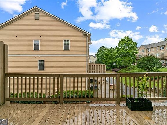 Motivated Seller!!! Welcome to your next home in Suwanee's premier Village Grove community. This beautifully maintained 3BR/3.5BA townhome offers three spacious levels with an open-concept layout and thoughtful upgrades throughout. The kitchen features bright white cabinetry with matte black hardware, granite countertops, stainless steel appliances, and a striking custom black island with dual sinks-complemented by brand new flooring installed in July 2025. Two metal basket ladder shelves offer stylish open storage, and just off the kitchen, a private deck provides the perfect spot for morning coffee or evening relaxation. Black-and-white handrails with gold-tone hardware add a refined touch that echoes the home's modern finishes. Each bedroom includes a ceiling fan and its own custom paint accent wall. A bold accent wall in the main living area is flanked by two built-in ladder-style bookcases-ideal for a home office or bar setup. Additional features include three mounted TVs that remain with the home, a Whirlpool washer, and updated matte black hardware in the main bathrooms. The spacious owner's suite includes a spa-like bath and a walk-in closet. Steps from Sims Lake Park and walkable to the new Town Center on Main, this swim/tennis community is served by North Gwinnett's award-winning schools and offers green spaces, trails, and HOA-covered exterior maintenance for hassle-free living.