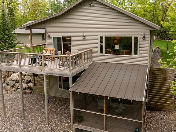 Attention Outdoor Enthusiasts! Looking for lakeshore & hunting acreage, with a maintenance free exterior leaving you more time to enjoy the outdoors and less time taking care of the home....Take a look at this stunning property on pristine spring fed Wilkins Lake boasting exceptional water clarity with 29.6 acres & 150' of lake frontage! Plenty of hunting opportunities, with deer, grouse and turkeys right out the back door, with hills and valleys offering plenty of cover. Impeccable 3 Br/ 3 Bath home with 30x40 heated & insulated garage! Natural wood interiors, quartz counter tops, stainless appliances, vaulted ceilings, main floor laundry, basement den, ICF foundation, off-peak/dual fuel & in-floor heat will be found inside. Exterior features steel siding, metal roof, covered front porch that leads to the deck, screened in porch, oversized heated garage, beautiful landscaped yard & lake side storage shed! Privacy abounds as you explore 29.6 acres, take the boat out for a day of fishing, jump on the wheelers & go for a ride to just relax...you will love it here! Dock & Lift are included.