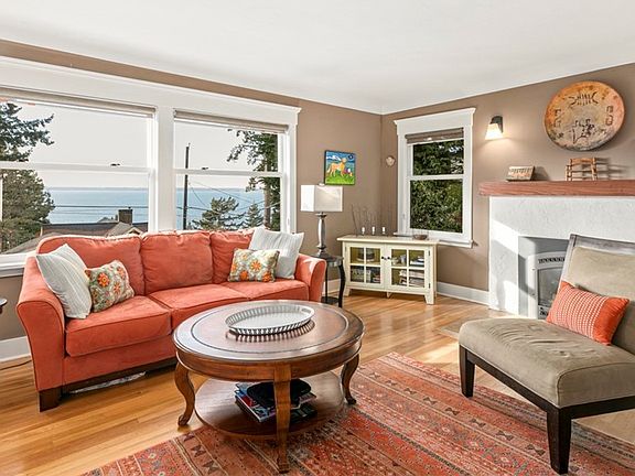 Beautifully updated South Hill craftsman with lovely Bellingham bay views! Spacious living room w/original oak floors, gas fireplace & a VIEW! An arched doorway leads you into the updated kitchen w/SS applncs & dining area full of natural light & bay view. Enjoy colorful sunsets while BBQing on your large deck! Wake up to water views from your Master w/walk-in closet. Large den is great for movie nights. Fenced yard is great for dogs! Two 3/4 baths. New windows, recently painted exterior & more!