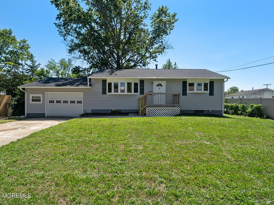 Beautifully updated 2-bedroom, 1-bath ranch with full basement and attached garage! Fresh paint, new carpet, and luxury vinyl plank flooring throughout create a modern feel. The bright living room features a large bay window, while the updated kitchen offers granite countertops, white cabinetry, stainless steel refrigerator, and black appliances. The remodeled bathroom includes a new vanity and stylish subway tile. All bedrooms are spacious with ample closet storage and ceiling fans. The full basement provides excellent storage or future expansion potential. Enjoy outdoor living in the large fenced backyard with mature shade trees, perfect for gatherings, gardening, or pets. Additional highlights include an attached 1-car garage, extended driveway parking, and a welcoming front porch. Conveniently located near schools, shopping, parks, and major highways--this move-in ready home combines modern updates with classic charm. Don't miss your chance to make it yours!