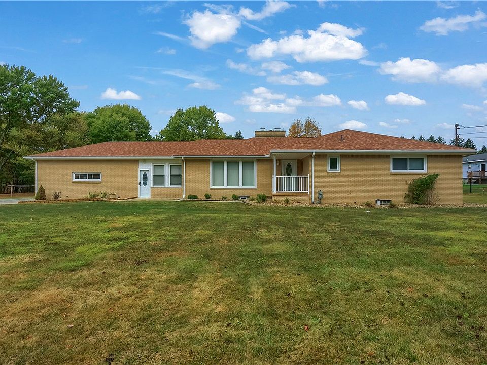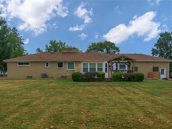 This sprawling three-bedroom brick ranch offers ideal one-level living on a table-top flat, acre-plus lot. Enjoy a welcoming front covered porch and hardwood flooring throughout the main level. The oversized primary suite features a private bath with a walk-in shower, while the updated main hall bathroom adds modern comfort. The living and dining rooms are filled with natural light, and the living room includes a cozy fireplace. The kitchen boasts newer appliances and flows into an enormous breezeway—perfect for entertaining or serving. Step outside to a rear deck with a covered gazebo for three season enjoyment. An oversized attached garage provides ample space. Downstairs, discover a finished game room with a second full kitchen and fireplace, plus an additional bedroom or den and generous storage space. This home combines comfort, functionality, and exceptional indoor/outdoor living spaces. Also includes a new roof and updated electrical box.