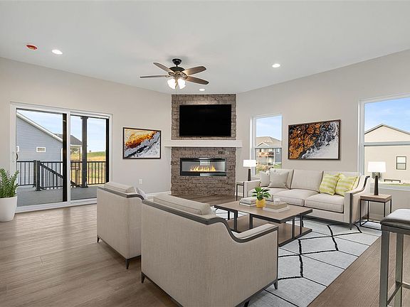 IMMEDIATE POSSESSION! CLASSIC TWO STORY w/ 3-CAR GARAGE. The Exterior Front Porch area greets you. The Main Floor is an Open Concept Design with 9-ft. ceilings. The Formal Dining Room Space, Kitchen and Living Room flow nicely together! The Kitchen features white cabinets, Stainless Steel Appliances, Solid Surface Tops, and the Island should seat 4-comfortably. The Living Room has an Electric Fireplace. A sliding Door leads to the 12' x 16' Covered Porch with Composite Decking & metal railings! By popular demand, the Builder also included the Steps down to the HUGE Back yard! The main floor 1/2 bath is also conveniently located just off the 3-Stall Garage. The Upstairs ALSO has 9-ft. ceilings, 2-Large Bedrooms, a shared Full Bath with Tub/Shower Combo, a Large separate Laundry Room just down the Hall. Then TREAT YOURSELF to the SPACIOUS Primary Bedroom Suite! There is a 14-ft. x 13-ft. Main area along with an 11-ft. by just over 7-ft. Sitting Area! The Primary Bedroom Bath has 2-sinks, a separate shower with built in seat and a Large Walk-In Closet! The Lower Level has a 26-ft. x 14-ft. Family Room with Wet Bar (Refrig. IS included!) Another Full Bath with Tub/Shower, and a 4th Bedroom! The lower level is not a walkout, but is a nice "daylight" level-NO WINDOW WELLS.