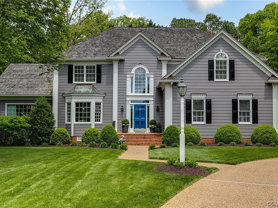 Stylish, updated transitional in popular Riverlake Colony features dazzling interior spaces, exquisite architectural details, and oversized windows and soaring ceilings for an abundance of natural light. Classic floor plan with beautiful formal living and dining rooms is enhanced by the owners’ recent addition of a stunning Great Room featuring French doors, handsome coffered ceiling, designer lighting, and fireplace with travertine marble. A luxurious well-appointed bath plus walk-in storage closet make this space an ideal first floor primary suite! The refreshed kitchen with white cabinetry, new stainless appliances and quartz opens to the 2-story casual dining area with deck access and the cozy family room with wood-burning fireplace, built-ins, and walls of windows. Second floor primary bedroom has 2 walk-in closets and spacious bath with vaulted ceiling, and the 3 additional guest bedrooms include one with ensuite bath and one with a study room and adjoining sleeping room any teen would love! Best of all, mature, manicured landscaping creates a park-like setting on the ¾-acre lot, and the rear deck, gazebo and patio/firepit area add lovely outdoor living and play spaces.