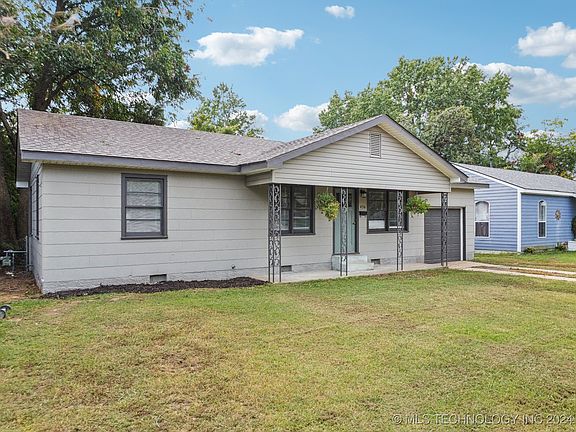 Nice ranch style 3 bedroom, 2 bath, 1 car garage. Recent updates throughout including~New roof in 2023. Kitchen includes appliances w/ newer gas stove & a new dishwasher. Real wood floors in bedrooms. Large open laundry room that could be utilized as a bonus room. Fully fenced in backyard. Home will qualify for FHA loan. Great location centrally located near highway 75 and downtown Okmulgee. Seller/agent related.