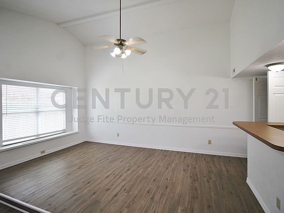 This residence offers 4 bedrooms and 2 full bathrooms, encompassing approximately 1,755 square feet of living space. The home features an inviting front porch leading into an open living and dining area with vaulted ceilings, wet bar and abundant natural light. The kitchen is comes equipped with a dishwasher, electric range open to a bay windowed breakfast nook, adjoining a second living area that includes a brick fireplace flanked by bookshelves and a wall of windows. The primary suite offers an en-suite bathroom with dual sinks and a walk-in closet. Three additional bedrooms, a full bathroom with dual sinks, and a spacious utility room with an extra sink complete the home. Additional features include a fenced backyard with pergola covered patio and a storage shed. Refrigerator, washer & dryer are also included for your convenience. Don't miss your opportunity to lease this beautiful home! Call NOW! Owner must approve all pets. 12 month lease term only.