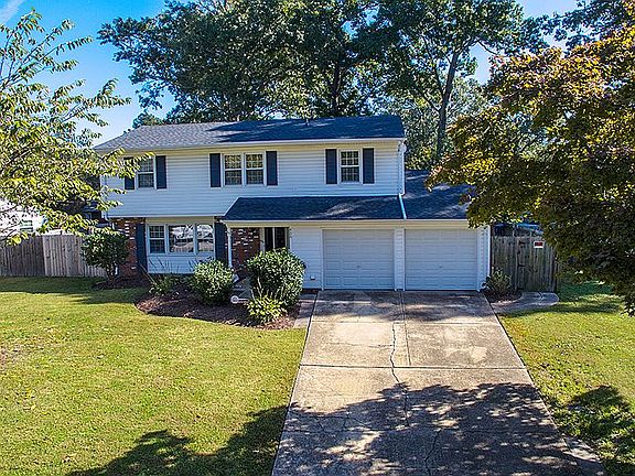 NEW PAINT THROUGHOUT AND BEAUTIFUL REFINISHED HARDWOOD FLOORS UPSTAIRS!This home in a quiet, established neighborhood is waiting for you and your family. Downstairs you'll enjoy two large living rooms, a formal dining room, eat-in kitchen, and half bathroom. You'll love the back patio and yard that surround the sparkling saltwater pool. There's also a large shed! Almost all flooring downstairs is tile, so feel free to come in wet from the pool! Upstairs you'll find a spacious master bedroom with two walk-in closets and a full bathroom. The other three bedrooms have their own full bathroom to share. All of the bedrooms upstairs have newly refinished hardwood floors, and the entire house was just repainted French Grey. This home offers the quietness of a tucked away neighborhood, but you'll only be a short drive to everything that Virginia Beach has to offer. Five minutes to the beach, Hilltop shopping, and much more!