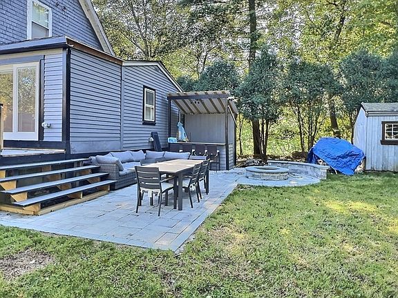 Experience the perfect marriage of vintage charm and modern luxury in this turn-key farmhouse colonial in a prime location near the heart of Rockland Center, shopping, restaurants, commuter rail, south shore hospital and highway. Completely renovated contemporary gourmet kitchen with beatiful white and black stone countertops, double sink, expansive rolling island with six posh-swiveling-high top chairs (included in sale), wall mounted folding cutting board, double fridge w/ water/ice-maker, along with a walk-in 8x10 pantry. ALL NEW: electrical and plumbing all the way to the street; roof, hot water heater, baseboard heat. Both bathrooms completely renovated with main bath having a luxury spa-like sauna/steam shower. Spacious backyard with 2 sheds, patio, firepit and outdoor bar. Imagine hosting unforgettable gatherings around the expansive island in your new chef's kitchen, or spending summer evenings on the patio enjoying the spacious backyard. Welcome to 436 E Water St!