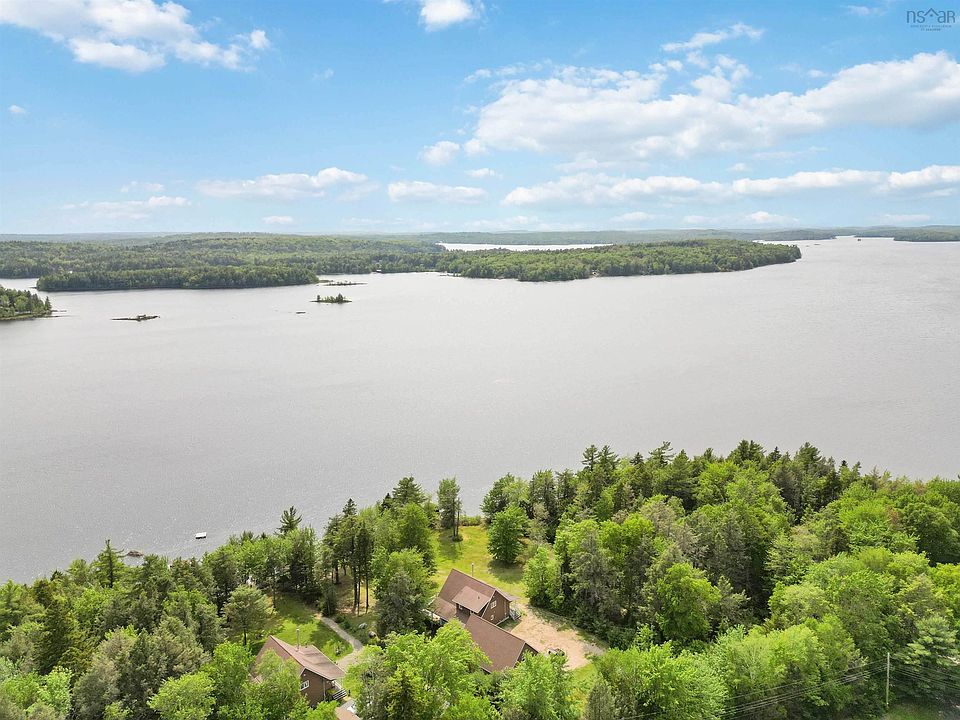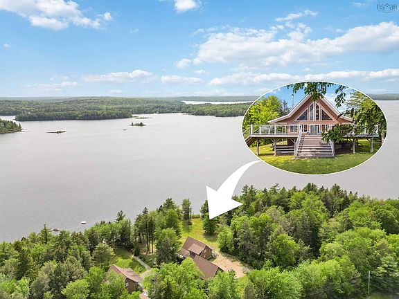 Welcome to lake life at its finest on the breathtaking shores of Molega Lake—one of South Shore's most sought-after destinations for boating, fishing, swimming, and kayaking. Known for its size and scenic coves, Molega is a haven for outdoor lovers and weekend warriors alike. Off the water, those who love exploring by wheel can bike, 4-wheel, or side-by-side on the over 52 km of roads the area highlights. This attractive A-frame retreat sits on a spacious, gently sloping lot that leads straight to your very own private beach. Whether you're here for lazy summer days or looking to make it your year-round escape, every day feels like the weekend on Molega. The home features 3 bedrooms, 2 full baths, and a warm pine interior that perfectly complements its natural surroundings. Cozy up by the wood stove, which is also an efficient alternative heat source. A massive wraparound deck offers stunning views and is ideal for morning coffee or evening sunsets. Down by the water, enjoy a dock and lakeside gazebo—perfect for relaxing after a day of paddling through quiet coves or reeling in the catch of the day. The icing on the cake is a massive 40 x 30 triple-car garage with soaring 12-foot ceilings, giving you plenty of room for your boat, gear, and more. Whether you're craving full-time lakefront living or a picture-perfect summer escape, this Molega Lake property delivers comfort, adventure, and space to breathe.