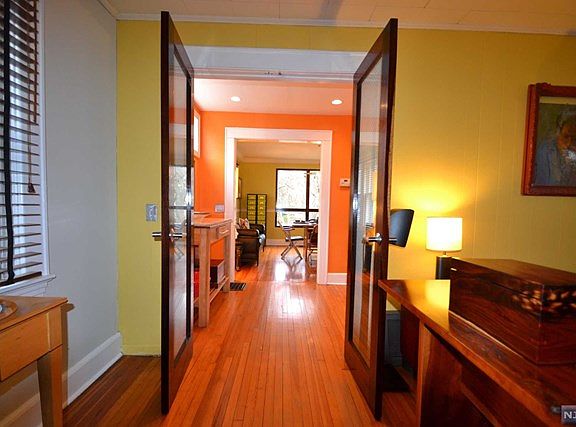Stylish and artistically trendy home, set in the wonderful urban setting of downtown Westwood! Certainly not a drive by ... must see inside! Engaging, well balanced, and tastefully updated with Lovely wood flooring, trim work and custom French doors. Large Living Room w/ Fpl and built-in's. Bright & sunny dining room with two walls of windows and French door onto deck, overlooking very private, secluded backyard. Entertainers delight, custom high end gourmet kitchen with top of the line appliances. Updated, and beautifully appointed elegant bathrooms add to the engaging charm of this most pleasingly stylish home! No heat or Cent a/c in one of the bedrooms and one bath. Short walk to downtown Westwood, great schools, shopping, restaurants, parks, and EZ commute by bus or train to NYC!
