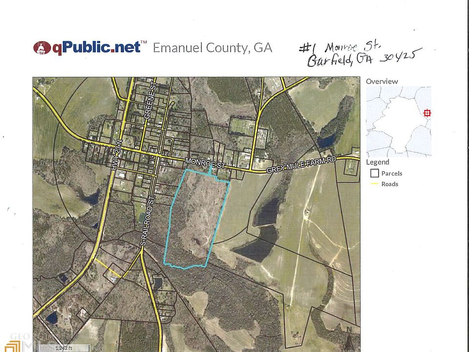 App 54.24 acres located in the city of Garfield. Easement entrance from Monroe St. to subject property. Secluded, creek access, partially wooded. Good location. Use for a get away or possible site for residential. Public water and sewer available from city. Would require connection and meter. Seller will consider selling in tracts not to be less than 5 acres per tract. New deed restrictions will apply.