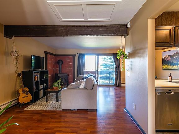 Move-in ready and perfectly located in the heart of Gunnison, this spacious two-level condominium offers convenience, comfort, and value. The main level features an open-concept living area with a galley-style kitchen with updated stainless steel appliances, dining space, and a cozy living room complete with a wood-burning stove and sliding glass doors to a private deck. A convenient half bath also houses a full-size washer and dryer. Upstairs, you’ll find two generously sized bedrooms, including a primary with its own west-facing balcony, plus a full bathroom. Owner updates include tasteful laminate flooring in the living area, complementing the unit’s bright and functional layout. Each residence in this well-maintained six-plex includes two dedicated parking spaces, and the complex itself is enhanced by manicured lawns supported by an underground sprinkler system. With low monthly dues of just $250, this home is ideally situated within walking distance to Gunnison’s schools, just steps from the RTA bus stop, and a quick bike ride to Western Colorado University and downtown amenities. A fantastic option for a first-time buyer, student, or investor looking for in-town convenience with excellent livability.