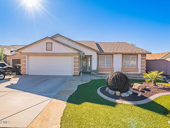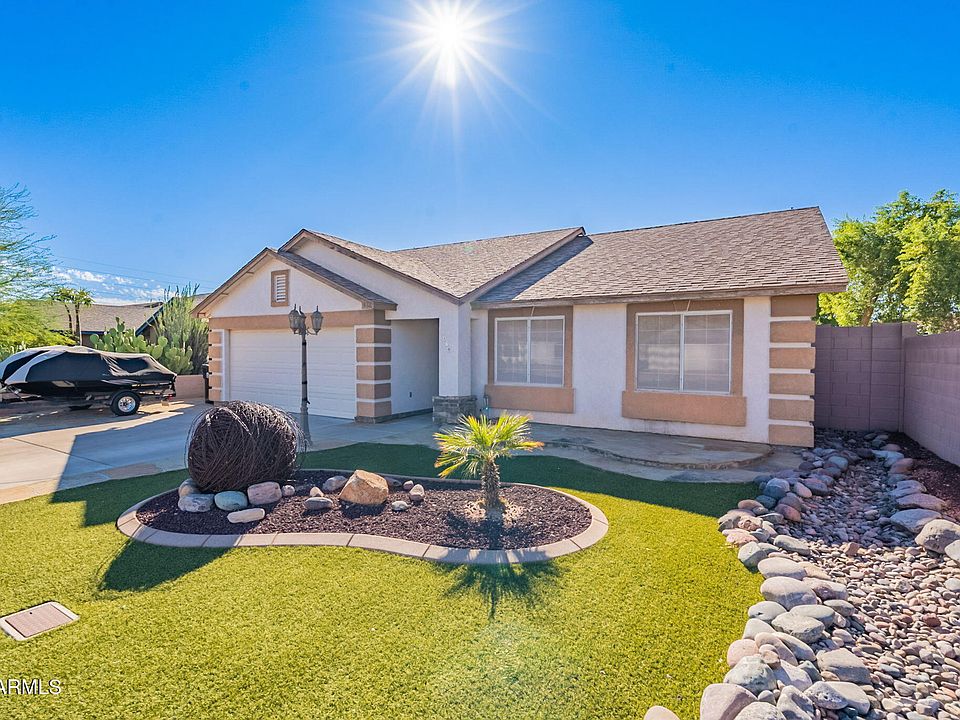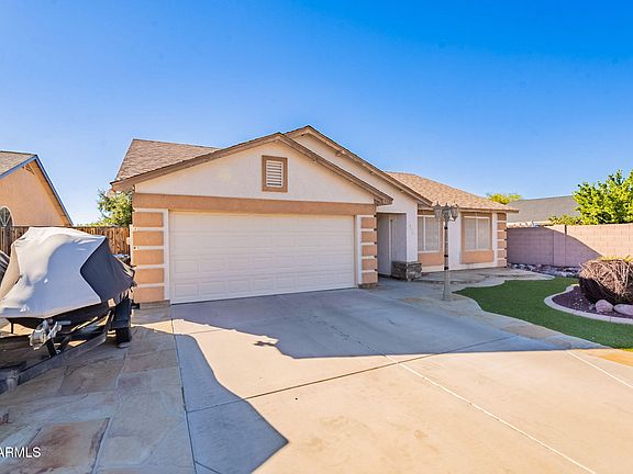 Welcome to this beautifully maintained 3-bedroom, 2-bath home located in the highly desired Camberley Place community—with no HOA. Step inside to an inviting open-concept living space featuring vaulted ceilings, a split floor plan, and a spacious family room perfect for entertaining. The updated kitchen offers stainless steel appliances, granite countertops, a tile backsplash, and modern lighting fixtures. Additional upgrades include a new AC unit and new water heater, plus a convenient indoor laundry room. Enjoy Arizona living in the backyard oasis with a sparkling pool and newer pool pump, a large covered patio, and an RV gate. The backyard backs up to a massive greenbelt, offering extra privacy and scenic views. Perfectly situated just minutes from top-rated schools and main freeways.