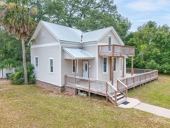 Great location, just 2 blocks to Lake DeFuniak and around the corner from the thriving downtown. This is your scarce opportunity to affordably buy in the well-loved historic district. Charming homes of all styles and designs surround this cottage sitting on 1/3 acre with the most dreamy Live Oak tree with it's sweeping branches...it's practically crying out for a swing or a brave climber. Indoors is 2000+ SF of living space with 2 downstairs bedrooms and a full bath and a larger master suite and oversized master bath. Features like tongue and groove walls bring back yesteryear's charm. The metal roof and vinyl siding help keep maintenance low.This perfectly habitable charming home offers a starting point and is simply asking for some extra love and pampering and is priced accordingly.