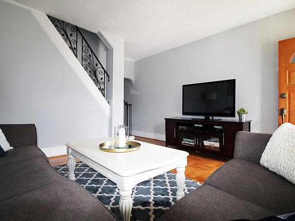Come check out this AMAZING Roxborough row home! This 1400 sq ft house is recently upgraded, well maintained, and exhibits classic row home charm. A quaint front porch, original hard wood floors, crown molding, amazing natural light, and a GORGEOUS back deck (table set and grill are INCLUDED) are just a few of the many wonderful features on the first floor. The kitchen is equipped with GRANITE COUNTERTOPS and STAINLESS STEEL APPLIANCES. The dining room is perfect for entertaining guests and INCLUDES a beautiful dining set and brand new hanging chandelier. There are 2 spacious bedrooms on the second floor with AMPLE CLOSET SPACE. Off of the 2nd bedroom, you'll find an additional space that is PERFECT for an office, nursery, or 3rd sleeping area. The carpet on the second floor is less than 1 year old! The basement contains a washer and dryer, central heating and air, tons of storage space, and access to the fenced in, backyard area. This home is on a pleasant street and is just minutes away from Manayunk's Main Street, major roadways (76, 476, Rt 1), and public transportation. Pictures are from previous tenants Tenants are responsible for ALL UTILITIES, including water Pets allowed on a case by case basis with non-refundable pet deposit Move in date any time after 2/1/21 Renter responsible for yard maintenance and snow removal (equipment provided), all utilities, including water