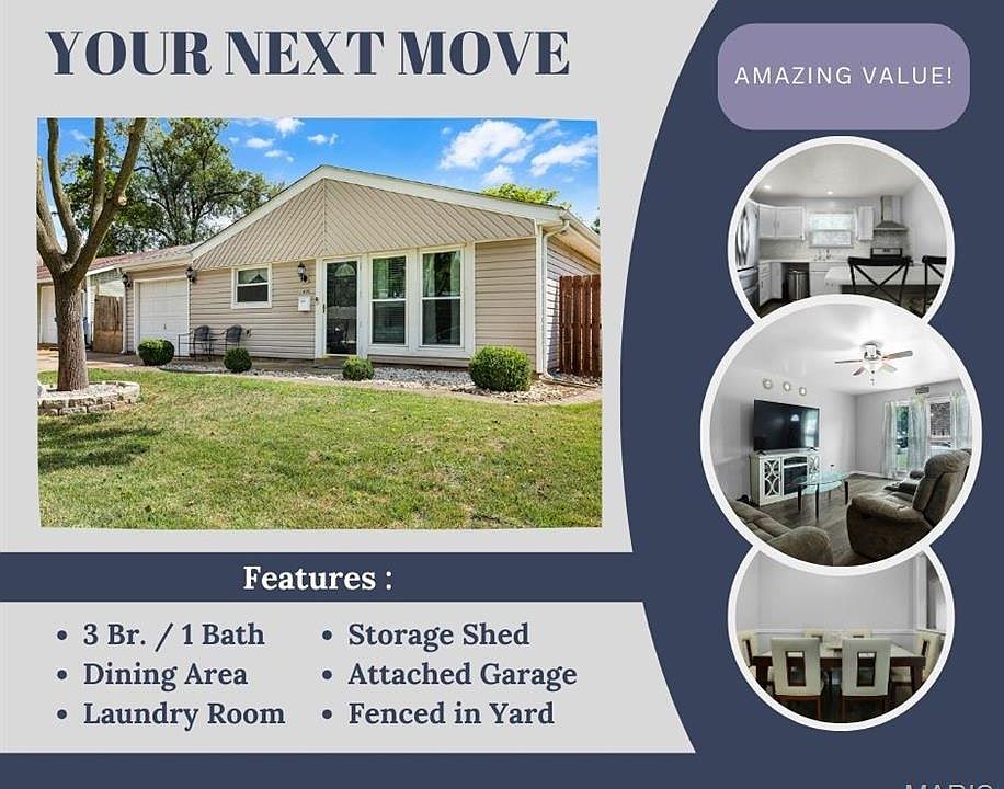 Step inside this spacious 3-bedroom, 1-bath home that blends comfort, function, and charm. The light-filled living room greets you with an open and inviting atmosphere, perfect for both relaxing and entertaining. A half wall provides seamless flow into the eat-in kitchen, where a designated dining area and convenient breakfast bar create multiple options for casual meals or family gatherings. Each of the three bedrooms offers generous space, complete with ample closets that keep storage simple and organized. The oversized laundry room adds everyday convenience, giving you room to work and keep things tidy. Outdoors, you’ll find multiple areas to unwind, sip coffee on the front patio, host barbecues on the rear deck, or enjoy the fenced-in yard that’s ideal for pets, play, or gardening. A large shed provides even more storage, making it easy to tuck away lawn equipment and seasonal items. Whether you’re looking for comfort, functionality, or space to grow, this home checks all the boxes. Call your favorite Realtor today to schedule a private tour and see how perfectly this home fits your lifestyle.
