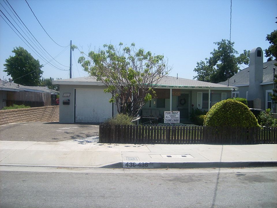 Duplex in Brea for lease. This spacious one-story back house features 3 bedrooms and 2 bathrooms, new paint, living and dining rooms, 1-car garage, washer/dryer hook-ups and fenced yard. Close to downtown Brea. Sorry, no pets allowed.