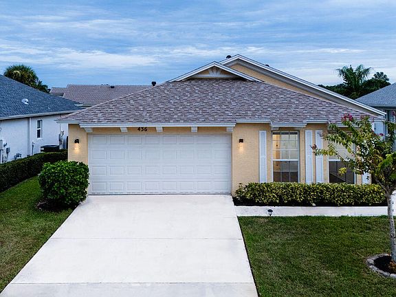 Welcome to 436 SW Talquin Lane, a thoughtfully upgraded lakeside retreat tucked inside the sought-after gated community of Lake Forest in Port St. Lucie. From the moment you arrive, this home invites you in with its clean lines, fresh exterior paint, and BRAND-NEW ROOF (2025) -- offering both curb appeal and peace of mind. Step inside and feel instantly at home in a bright and airy living space designed for both comfort and style. Recessed high-hat lighting casts a soft glow over designer finishes, while the tile flooring throughout offers durability and easy maintenance. The heart of the home, a remodeled kitchen, features a sleek new faucet, brand-new dishwasher, and contemporary cabinetry -- perfect for casual morning coffee or gathering with friends. Two spacious bedrooms and a versatile den provide plenty of room to stretch out or work from home or use as a THIRD BEDROOM. The bathrooms have been fully updated with stylish fixtures and modern showerheads, giving a spa-like feel that enhances your everyday routine.