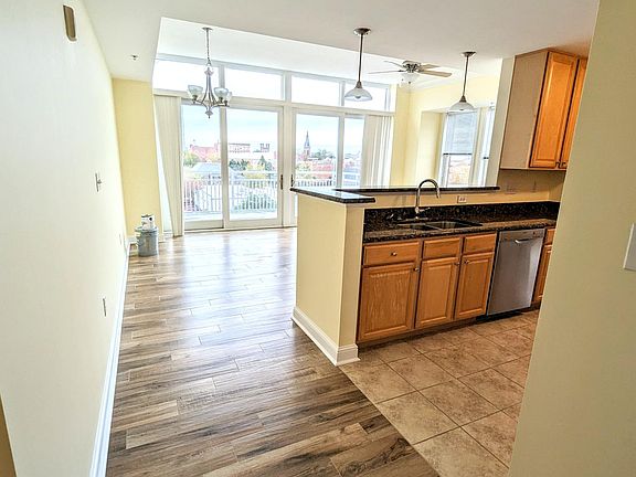 Freshly painted (no longer a light yellow, but an off-white color as seen in the last photos) with all tile floors. Highly desirable fourth floor unit at the end of the hallway with a beautiful view of downtown New Bern. Comes with an outside patio that overlooks the Farmer's Market. Unit comes with off-street garage parking and secure entrances that are accessible via a key fob. All Sky Sail residents have full use of an exercise room, outdoor pool (seasonal), mail room, and lobby.