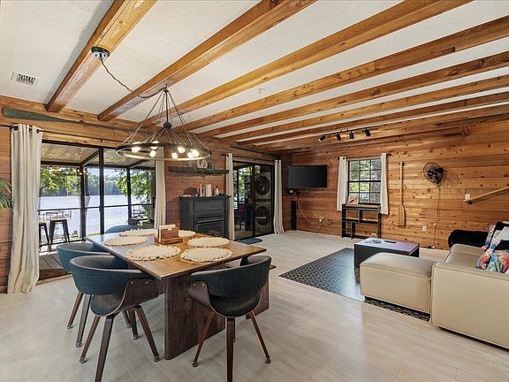 Lake Talquin lakefront home with a remarkable sunset view! Enjoy great fishing off your dock. This home overlooks Ocklawaha Creek at Lake Talquin. 3BR/2BA home with open living room / dining room. Kitchen with bar. Plus Approximately 1300 SqFt of covered outdoor living/entertaining space with TV, large screen for video golf... or movies/ workshop area, 3rd bathroom with open air shower Large covered deck and screened porch, boardwalk to dock with built-in bench. UPDATES: HWH 2023, Washer & Dyer 2023, ROOF 2020, HVAC 2022. This home is TURN KEY, move-in and enjoy Lake Talquin Living or excellent short-term or long term rental/investment opportunity. Lake Talquin is an 8800+ acre lake; enjoy fishing, skiing... an abundance of wildlife in adjoining State and National Forests, and miles of shoreline to explore. All measurements are estimated.