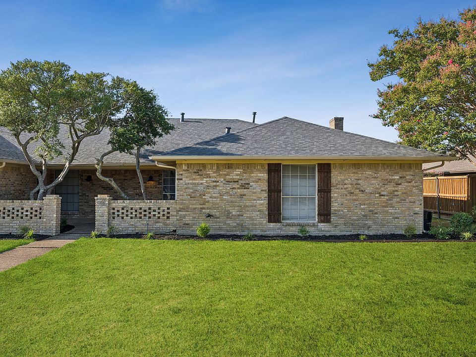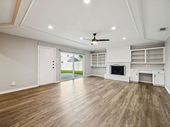 This amazing duplex is beautifully finished and located in the heart of Richardson! Large living area with raised ceilings, brick surround gas fireplace, built in shelving and desk area is a great place to relax after a long day! Open concept kitchen with wood beam, stainless steel appliances, and plenty of counter and cabinet space. The primary bedroom is spacious and just through a sliding farmhouse style door is an attached primary bathroom with decorative tile flooring and a subway tiled tub-shower combo! Outside there is a patio with plenty of room for your grill and outdoor furniture! Don't miss out on this opportunity, it won't last long!