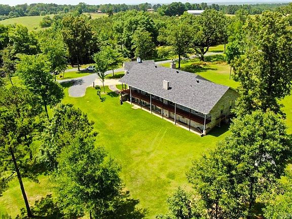 • 140 acres. (1 acre homesite, 4 acres pasture, 135 acres timber). Trails throughout the property! • 4-acre stocked pond, plus a smaller pond. • Spring-fed creek. • Built in 1982. • 3,938 square feet, per tax card. • 4 bedrooms plus 2 other rooms that could easily be bedrooms. • All 4 bedrooms have a private bathroom. • 5 bathrooms. • 1,066 sf finished basement: Bedroom, bathroom, living area and a storage room. Wood stove. • Shingle roof, 2021. • Brick exterior. • Windows have been recently upgraded/replaced to wooden clade energy efficient. • Granite counter tops and custom oak wooden cabinets. • Refrigerator, washer & dryer convey. • Tile/carpet/vinyl flooring. • Sheet rock interior walls and ceilings. • Wood burning fireplace. • Aerial photos credit: Monte J. Bartek • Large laundry room with sink, full bathroom and counter & cabinet space. • 572 sq ft attached double garage, with workspace. • 252 sq ft covered slab front porch. • 492 sq ft covered slab back porch which leads into the finished basement. • 492 sq ft covered back porch that leads into the upstairs living area. 4 entries: office, dining room, den, and bedroom. • SEE ATTACHMENT FOR MORE INFORMATION.