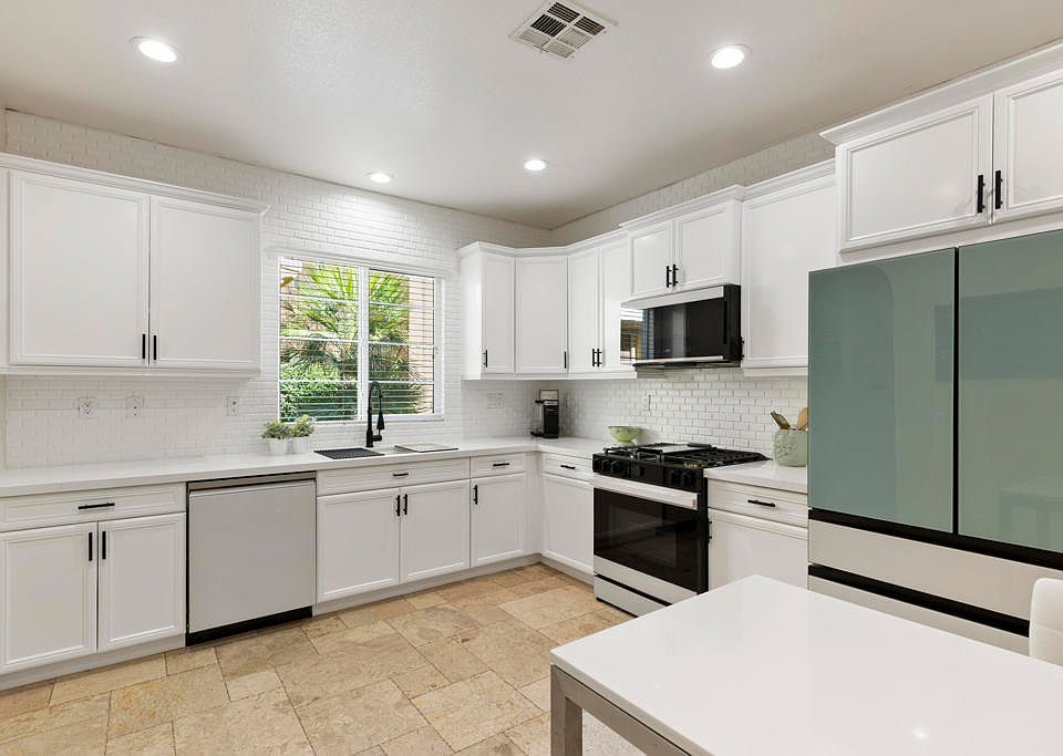 As you enter this CHARMING NEWLY REMODELED 3 bedroom 2 1/2 bath home you will be greeted with an array of comfort all with a Designers Touch! TRAVERTINE floors throughout the lower level. The living room, dining area, and kitchen have large windows to bring in that amazing natural light. The kitchen is crafted with every detail in mind. Samsung Bespoke Oven w/Range, microwave, Full Backsplash, New Painted Cabinets, Hunter Douglas Blinds, New hardware, Farm Style Sink and stunning Quartz Countertops. The laundry room has all new light fixtures, New painted cabinets with new hardware that has access to the garage. Beautiful LV flooring takes you upstairs to the bedrooms. There you will find nice, oversized rooms with ample space. Master bedroom has a large walkin closet with a separate tub/shower and dual vanity. Tired after a long day? Step outside and relax on your patio with a built in BBQ, and side yard. The garage has epoxy flooring and a 2 Ton Mini-Split to keep your garage nice and cool. Spanish Walk offers three swimming pools and spas, billiard room, large gym, dog park, playground, and beautiful manicured grounds. Spanish Walk is centrally located to McCallum Theatre, easy access to I-10 freeway, close proximity to Acrisure arena, Fine Restaurants, UC Riverside-Palm Desert, and CSUSB Palm Desert campus. Seize the joy of privacy, comfort, and convenience of this home and embrace the allure of living at Spanish Walk. Schedule your private tour today.