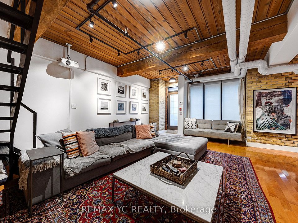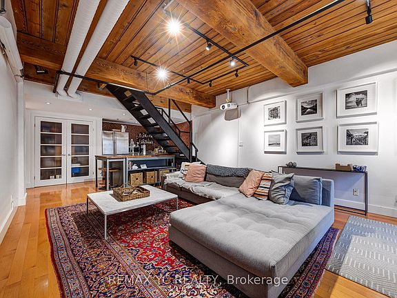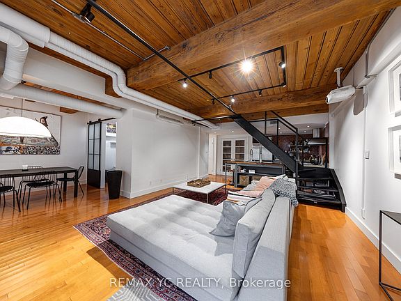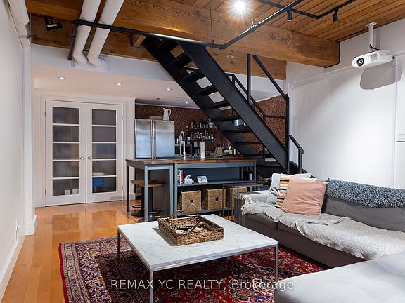 Don't Miss This Rare, True Authentic 2-Storey Loft Unit, Approximately 1,500 sqft of living space Located Just West of Spadina/Wellington. Soaring 10-Ft Ceilings Throughout The Unit With Floor To Ceiling Windows. Generous Main Floor Open Plan Living/Dining & Chefs Kitchen With Jennair Premium Gas Stove & Jennair S/S Fridge. Additional Bedrm W/Double Mirrored Closets. Separated 2nd Level Primary Bedroom Is Not Disappointing Anyone With Its Great Size, Den W/Dual Closet, Fire Place, and Ensuite Bathroom!. Enjoy Your Summer With Exclusive BBQ Machine Located At Front Terrace! Located In the Prestigious King West Neighbourhood. The Well, The Most Exciting New Shopping Centre On your Doorstep, Min To Toronto's Vibrant Financial and Entertainment Districts, and only a short trip to the Rogers Centre stadium, the CN Tower, and the Metro Toronto Convention Centre, as well as an endless list of shops, restaurants, bars and clubs!