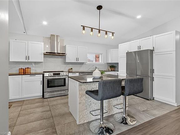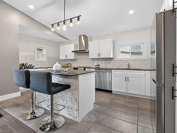 Exquisitely updated, move in ready 3 bedroom, 2 bathroom Dunnville Bungalow situated on premium 69’ x 165’ lot backing onto open fields on quiet West Street. Great curb appeal with stone & complimenting sided exterior, ample parking, & oversized back yard with 16’ x 33’ deck for entertaining. Truly must view the interior to appreciate the stunning updates throughout this home highlighted by updated eat in kitchen with quartz countertops & backsplash, S/S appliances, & eat at island, dining area, large living room with electric fireplace, 3 spacious bedrooms highlighted by primary bedroom with vaulted ceilings & lavish 4 pc ensuite with soaker tub & walk in shower, additional primary 3 pc bathroom, desired MF laundry, & welcoming foyer. The unfinished basement provides ample storage & utility area. Updates throughout include premium hardwood & tile flooring, modern decor, fixtures, & lighting, kitchen, landscaping, & more. Conveniently located minutes to downtown, shopping, schools, parks, farmers market, boat ramp, marina, & the Grand River. Ideal home for the first time Buyer, family, or those looking for main floor living. Shows Incredibly well & attractively priced. Immediate possession available. Experience Dunnville Living!