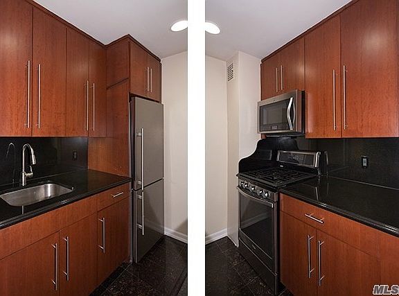 Manhattan style hi-rise. Ultra elegant interior upgrades. Douglaston Village. Sleek cherry cabinets w/granite countertops, backsplash, SS appl, granite kit flr. Washer/dryer! Granite bath, floating vanity, rain showerhd/frameless shwr drs. 2" faux woodgrain window tmts. Crown molding, 2-tone paint. prices/policies subject to change without notice.