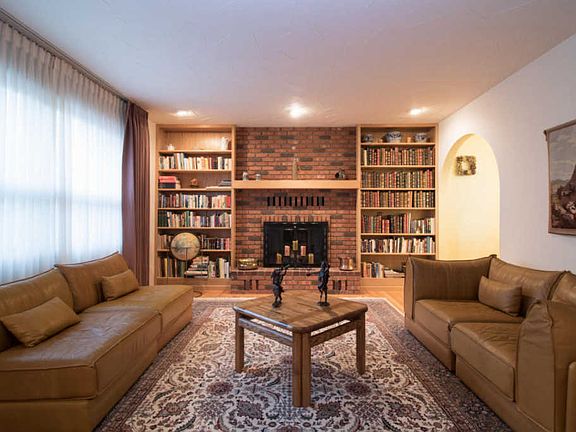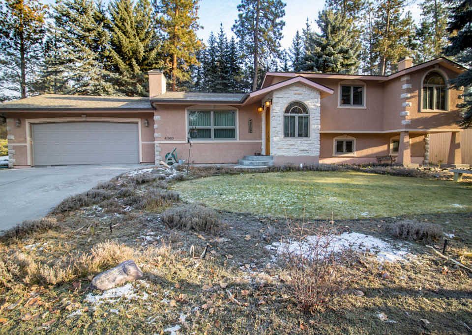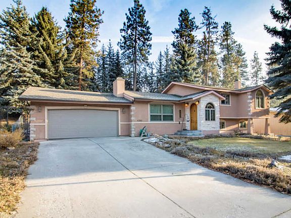 This exceptionally cared for 3 bed 3 bath, 2,800 sq ft tri-level home is conveniently located in Lincolnwood area of Missoula, providing many recreational opportunities. Approaching the home you will see a large Blue Spruce tree that stands in the front yard and complements the Adobe brown, stone lined home. Past the natural slate entry room, as you enter the home, the hall opens to the living room with a large arch and windowed, dividing walls. The cozy living room has an enormous brick fireplace and attached bookshelves which are solid oak on both sides extending to the ceiling.