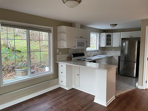 Available Now! Rare find in amazing location! Recently updated 3 bed, 2 bath duplex home with single car garage and views of Mt Hood in an amazing West Linn Location. Downstairs: living, dining, kitchen, full bath, laundry closet(includes washer, dryer), see-thru fireplace Upstairs: 3 bedrooms with closets, largest bedroom has Mt Hood views, 1 full large bathroom Exterior Living: Back private patio, front deck with Mt Hood views, flat yard with grass, cherry trees and bed of lilies, single car garage Nonsmoking, stair mobility required. Garbage is included in rent, water/sewer bill is additional fee paid to owner. One small, well trained dog or cat will be considered with additional pet rent & deposit. Tenant screening criteria available upon request. Qualified applicants will pay $40/adult for background check as part of final application step. Location: Home is 0.4 miles away from Camassia Nature Reserve and Wildlife Park trail systems, 4 minutes to stores and restaurants in Downtown Oregon City and West Linn Willamette District, walking distance to Sunset Park and Elementary, and many great neighborhood walks. A 26 minute drive to downtown Portland, 21 minutes to PDX, or 10 minutes to I-5 support short commutes. 12 month lease, garbage included in rent. Water/sewer paid to owner separate from rent. Strictly Non smoking. 1 designated parking space in driveway, 1 car detached garage.