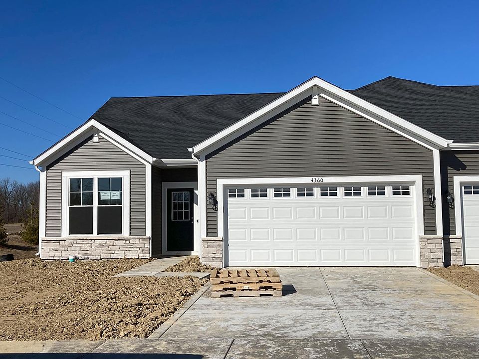 You'll know you've found your new home when you step inside the Bryson! You'll first notice the view of the trees from your sunroom and great room windows! The kitchen has 42'' gray painted cabinets, quartz countertops, beautiful island w/overhang, pantry, and SS appliances. Enjoy time crafting or watching tv in the den with french door entry. There is a fireplace in the great room for the chilly fall evenings and winter days. The owners bedroom has a walk-in closet and the owners bath has a walk-in shower w/seat and db vanity. The full hall bath is conveniently located near the 2nd bedroom. There is a laundry tub in the laundry room and attic access in the garage. Laminate plank flooring throughout the main living area, den, and sunroom and ceramic tile in the baths. All of this plus an 11' x 10' concrete patio, 2 car garage, and maintenance free landscaping w/irrigation. Visit our brand new Westwind community and find a place where you belong!