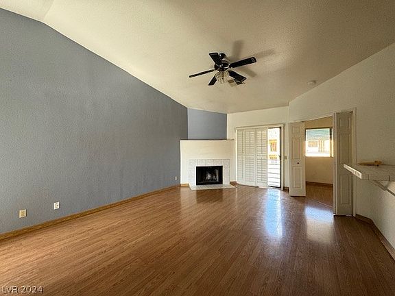 Great upstairs 2 bedroom condo in the Gated Rancho Santa Fe complex. This unit has vaulted ceilings and a cozy fireplace! Smaller complex in a convenient location only minutes from the Famous Las Vegas Strip, world class shopping and restaurants, the airport, parks, schools, golf and more. Community has Pool for those warm summer days, don't miss this deal - it will not last!