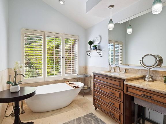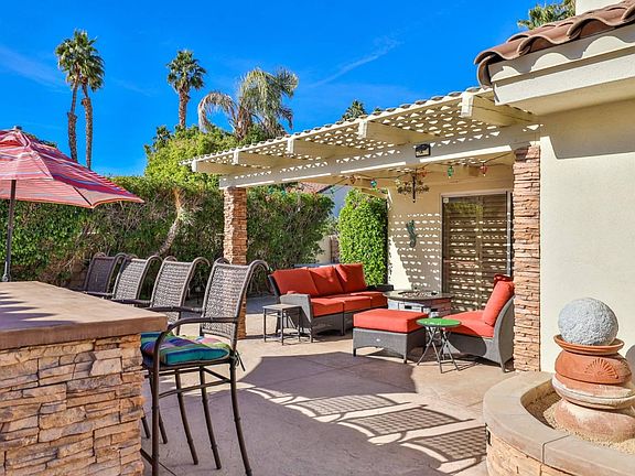 Our properties are professionally managed. Guests can expect timely guest service support throughout their stay. Serenity in the Desert! Beautifully updated home in Desert Breezes with a large private patio! Incredible attention to detail! The private side yard has been updated with stacked stone hardscaping, a covered patio with a fire pit, a BBQ island with bar seating, water feature, and is nicely landscaped. A cook's dream kitchen features updated cabinets, gorgeous granite counters, newer appliances, and recessed lighting. The breakfast nook on the East side of the kitchen is a great place to enjoy the sunrise with a cup of coffee. Enjoy updated lighting, window shutters & tile flooring throughout. Large main King bedroom suite with totally renovated bath featuring barn door'' entry, soaking tub (currently under repair), gorgeous oversized shower, large walk-in closet, raised double sink vanity. Light, bright guest bedroom with Queen bed and a third bedroom converted to den/office space. The Den has Queen size pull-out sofa, TV, and desk walks out to side patio with Northeastern exposure Laundry room off of the breakfast nook and 2 car garage. This home is perfect for getting away from it all, relaxing or entertaining. Located in the gated community of Desert Breezes across from Indian Wells Tennis Gardens you have full use of the Clubhouse, Workout Facility, Main Pool, and Lighted Tennis Courts. You are never lacking in things to do. You pack the Sunscreen and we will provide the Sunshine! 11 Minutes to the Shops on El Paseo, Our Rodeo Drive with all of the finest restaurants and shops. 30 Minutes to Palm Springs International Airport. 3 Minutes to Indian Wells Tennis Gardens, 13 Minutes to the Living Desert, Our fabulous Gardens and Zoo, 15 Minutes to the Street Fair. Small Dogs Considered! Please email a photo for approval and provide your furry friend's breed, age, and weight. No Parties. No smoking. This property is a vacation rental, email for more information.