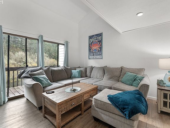 Condominium on the Umpqua River. Set in the Brandy Bar Landing community. Features 2 beds and 1.5 baths with updated kitchen appliances, interior paint and vinyl flooring. 1 deck and 2 patio areas, upfront parking and ground level access. Expansive open space. Incredible mountain and river views. Boat launch and trailer parking. Community dock with a boat slip. Salmon and striped bass fishing. Easy boat ride to Winchester Bay.