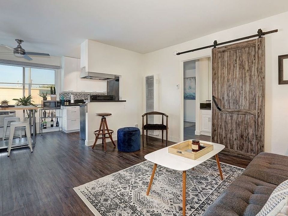 Recently renovated one bedroom, one bathroom condo in the Palms/Mar Vista area. Updates include new hardwood flooring throughout as well as full kitchen renovation with new counter tops and stainless steel appliances. Bedroom has en suite bathroom and walk in closet. Centrally located, with ease of access to downtown Culver as well as the 405 freeway. Walking distance to top notch local bars and restaurants such as Lodge Bread Company, Hatchet Hall, The Corner Door, A Frame, Fin, and The Alibi Room. Unit includes one assigned covered parking space and storage.