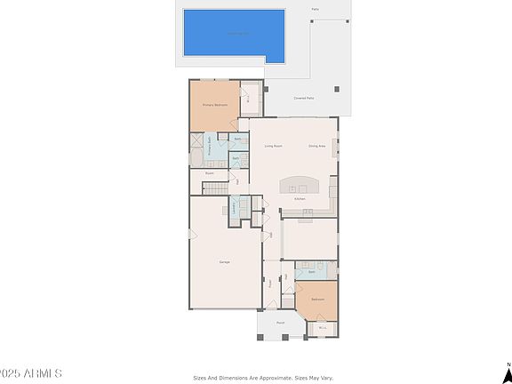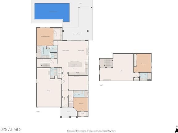 This home has everything- private pool, 3 bedrooms, 3.5 bathrooms, a spacious loft, an office, and beautiful upgrades throughout. The gourmet kitchen has modern 42in cabinetry, stainless steel wall appliances, a pot filler over the gas range, and a kitchen island breakfast bar. The great room offers natural light, and a center pull open extended length sliding door that leads to the resort style backyard. wood-look tile floors and shutters. The primary suite is move-in ready with an ensuite featuring separate shower and soaking tub, and a walk-in closet. Upstairs is a huge loft with a bedroom and full bathroom. extension in the garage, and service door, laundry room with cabinets, tankless hot water heater. Do not miss out on this home! Fulton Homes at Cooley Station is an exceptional home community that combines luxury living with unbeatable amenities, including a sporting court, a state-of-the-art community pool, and a playground for endless fun. Ideally situated near top attractions like Main Event, Topgolf, Discovery Park, and SanTan Village Mall, residents enjoy unparalleled access to premier shopping and fine dining at The Keg and High Tide Seafood. With proximity to multiple freeways, this community offers both convenience and a vibrant lifestyle in the heart of Gilbert.