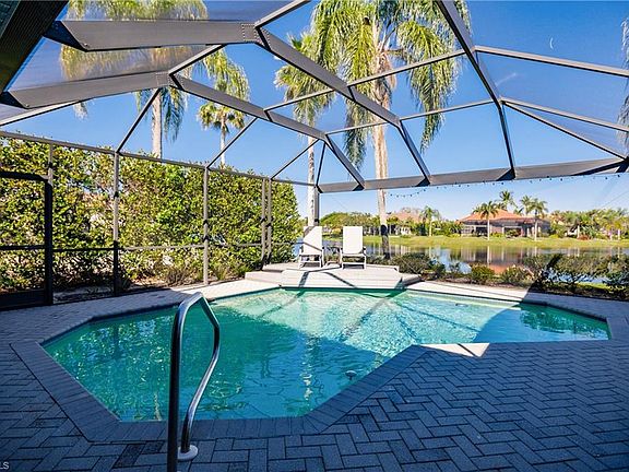 Welcome Home to LONGSHORE LAKE! You have found your "Slice in Paradise"! This meticulously maintained 3 Bedroom 2 Bathroom home boasts stunning lakefront views and unforgettable daily sunsets, creating a picture-perfect backdrop for every moment. Step inside and be greeted by a spacious Great Room and Dining area, designed for both comfort and style. Natural light floods the living space, accentuating the serene ambience and highlighting the beautiful lake views and pool that await just beyond the sliding glass doors. The heart of the home, the NEW Kitchen 2023, features Custom Wood Cabinets, Quartz Tops, SS Appliances. Retreat to the inviting NEW Primary Bath with Quartz Tops and Frameless Shower. Two additional Bedrooms provide flexibility for guests, a home office or whatever your lifestyle demands. MORE Features: NEW Luxury Vinyl Plank in 3 Bedrooms 2023, NEW Roof 2018, NEW AC 2019, NEW Picture Window Pool Cage 2018, NEW Water Heater 2022, Solar Pool Heater, Brick Paver Lanai, Plantation Shutters, Impact Glass Windows, Electric and Accordian Storm Shutters, NEW SS Washer/Dryer 2021 Beyond the beauty of the home itself, residents of this sought after community enjoy access to a host of amenities, including Clubhouse Dining/Restaurant, Fitness Center, Professional Tennis Programs with Pro, Activities galore for all ages, Boating/Kayaking, Private and Public Golf minutes away. Conveniently located in North Naples, this home offers easy access to shopping, dining, entertainment and top-rated schools ensuring that convenience is within reach. Schedule your showing today and start making memories that will last a lifetime!